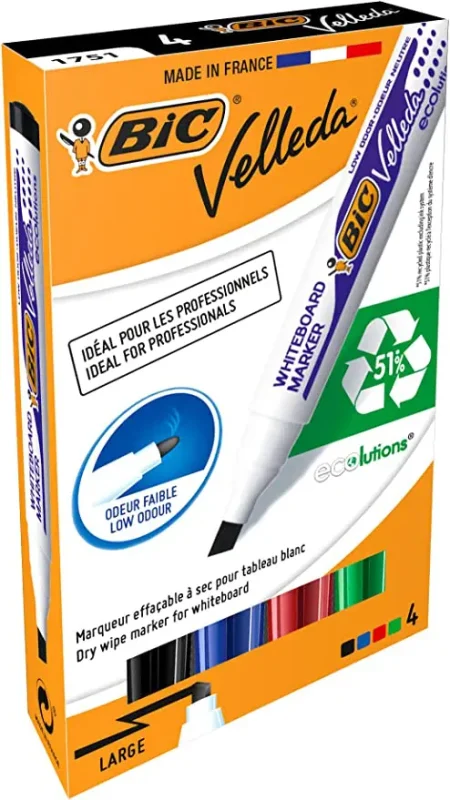 BIC Boîte de 4 Marqueurs Velleda Pointe Biseautée