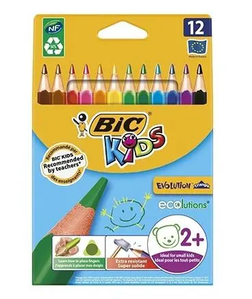 12 Crayon de couleur Gros triangulaire Bic KIDS